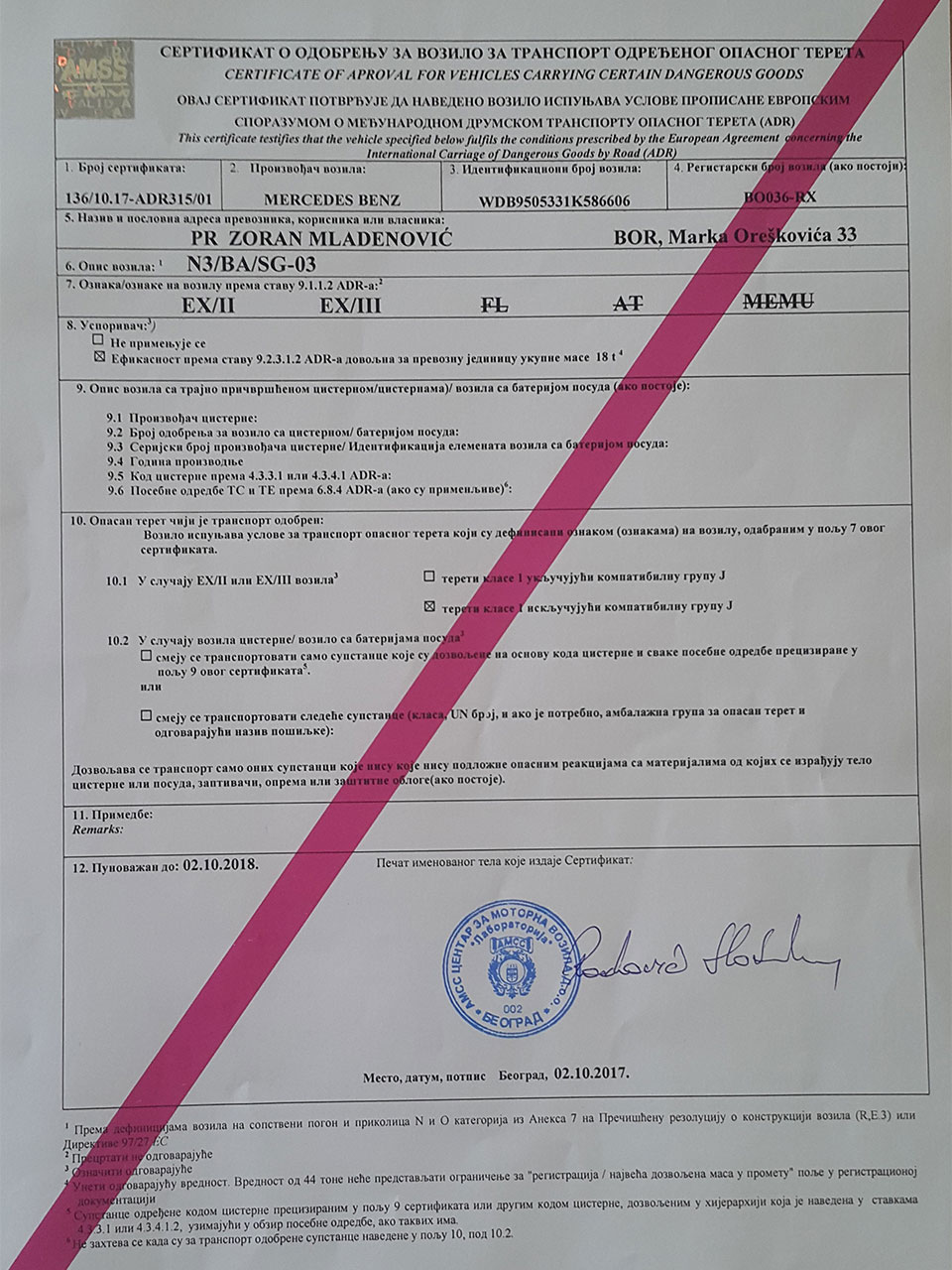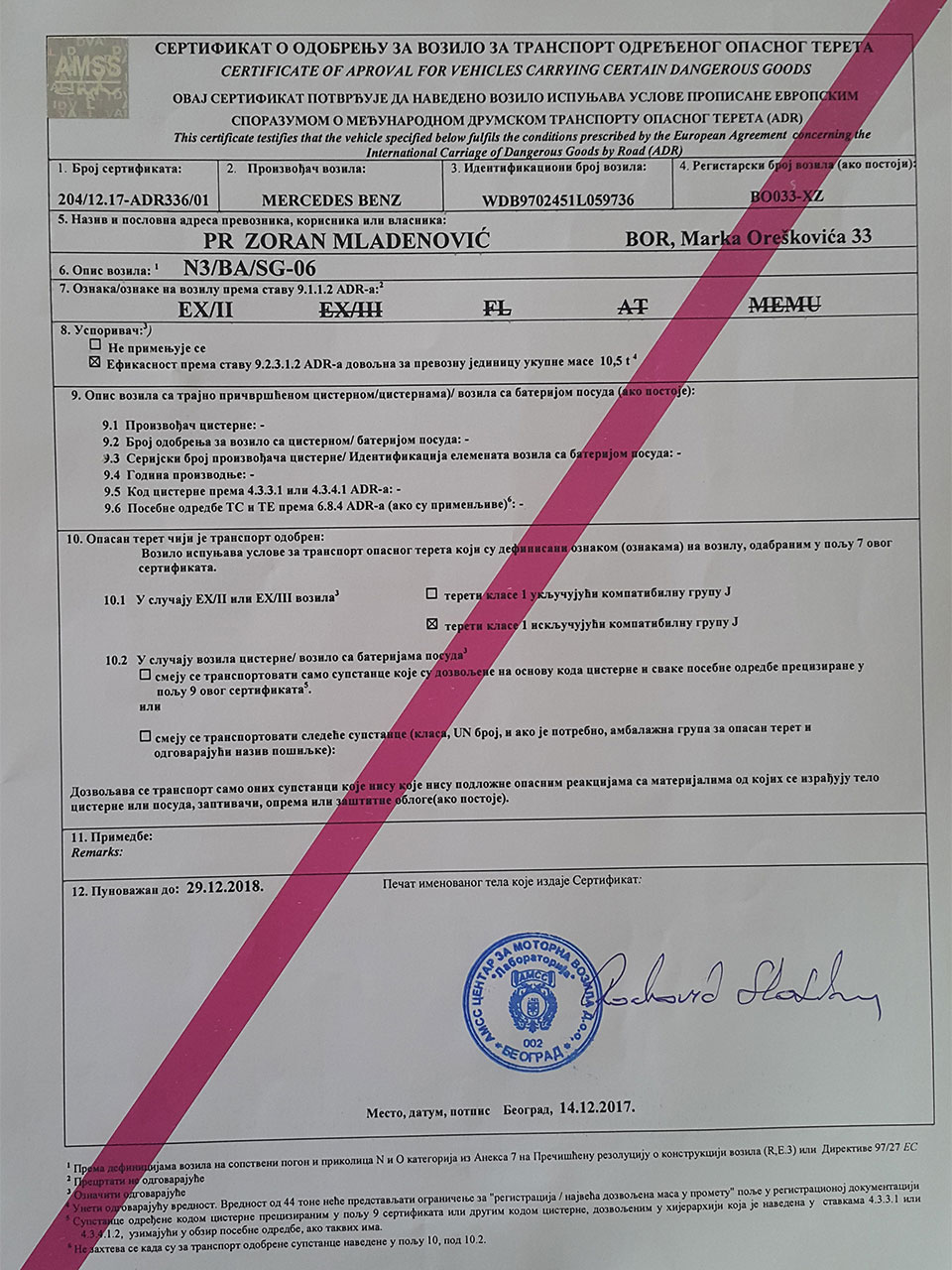 Delatnost: 4941 (Drumski Prevoz Tereta)